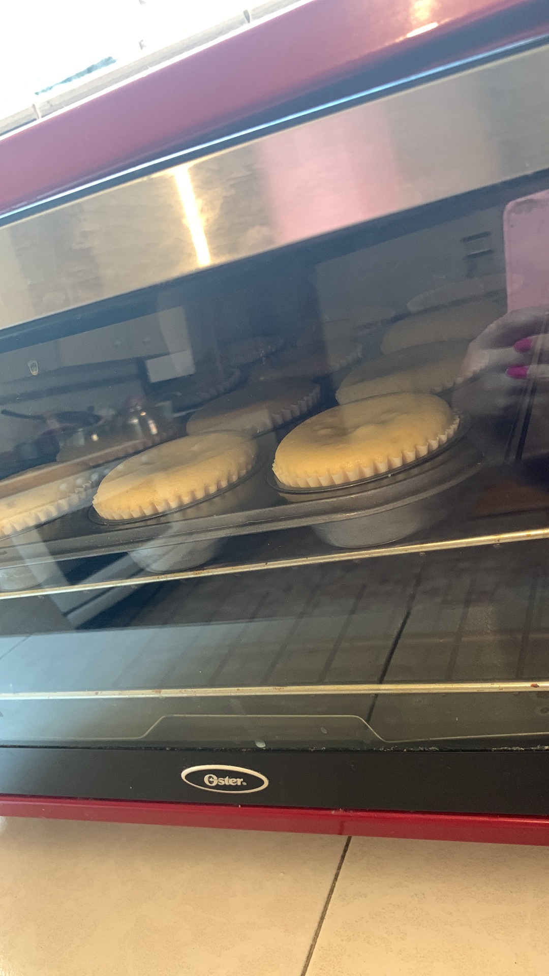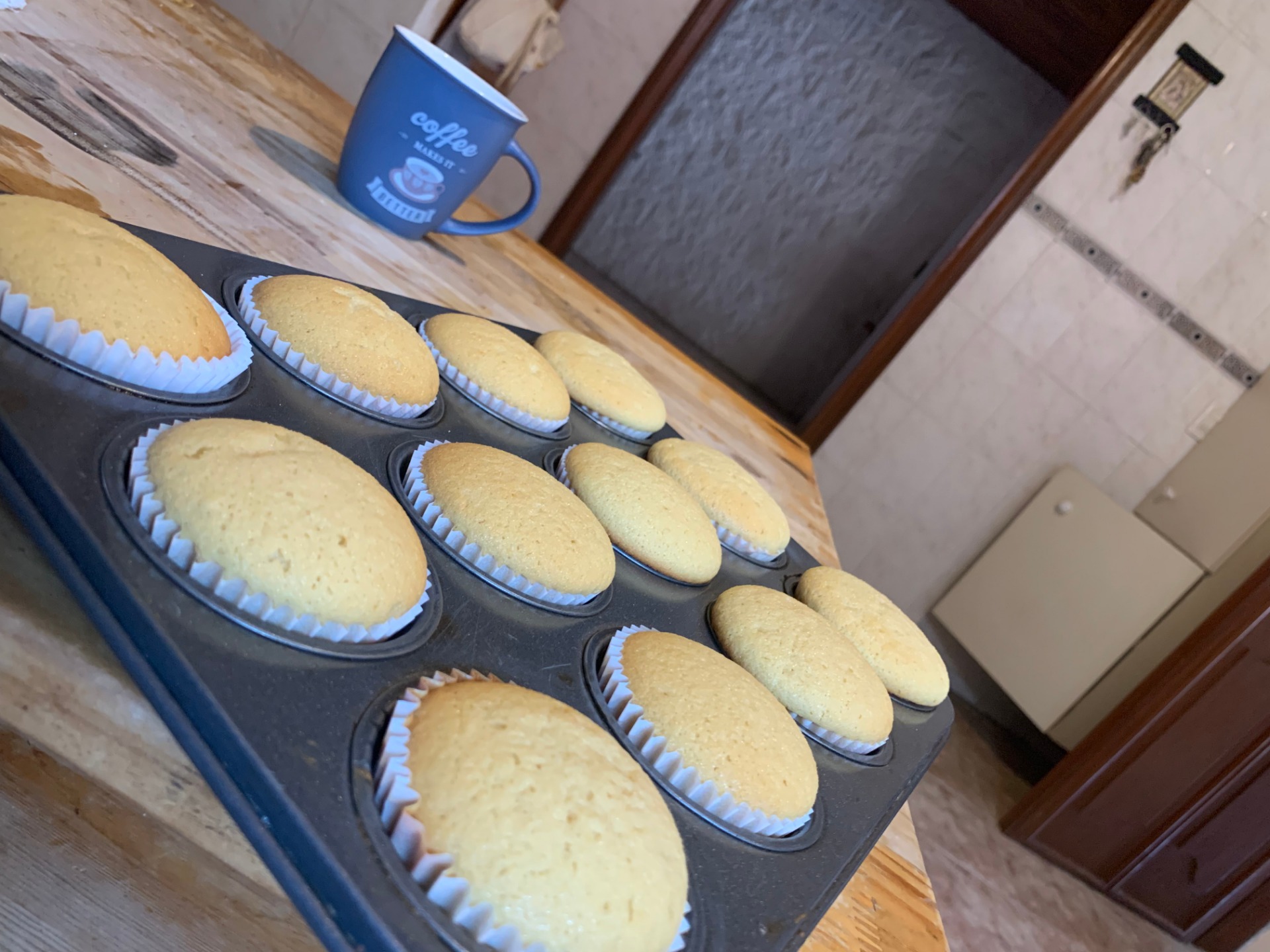 El preparar postres desde temprana edad me ha gustado es por eso que después de ver varios videos de cupcakes, decidí a desafiar mis capacidades reposteras y me emprendí para preparar unos panecillos, no obstante, para llevarlo al siguiente nivel, decidí a hacer una jalea de arándano para rellenarlos y quería hacer una decoración que quedara en forma de esfera, pero se hacía con crema de mantequilla y realmente no tenía mantequilla, aparte de que a mi no me gusta ni su consistencia, ni su sabor, es por eso que la decoración la hice con merengue francés, sin embargo por más que lo congelé este nunca se endureció, entonces tuve que improvisar, la decoración la desmoldé y a pesar de que no quedó como una media esfera se vieron super bonitos.